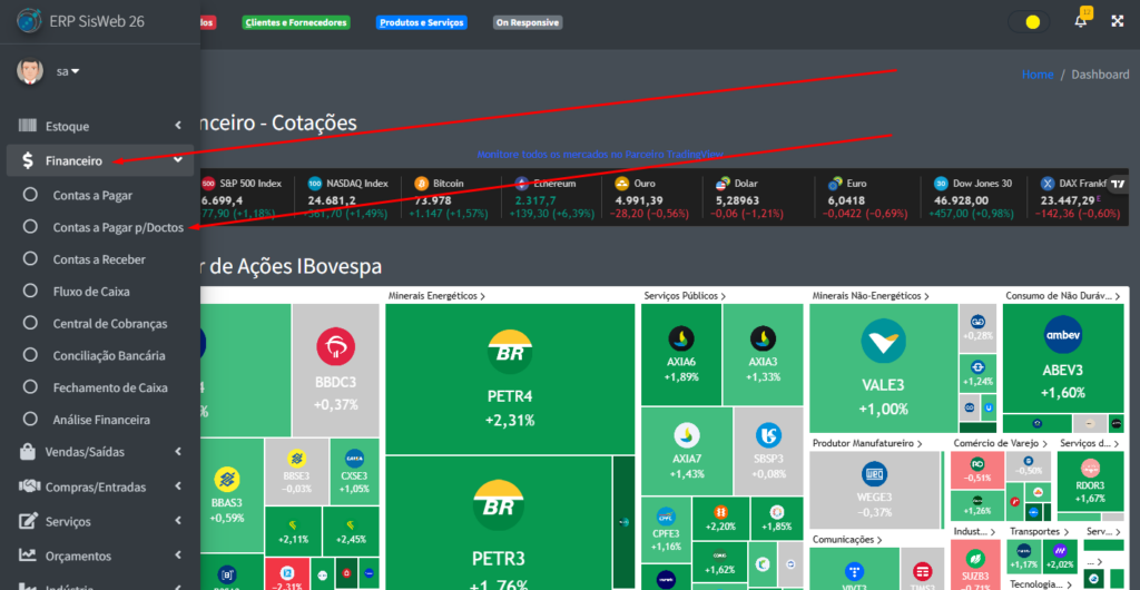 Faça login no sistema ERP utilizando suas credenciais de usuário.