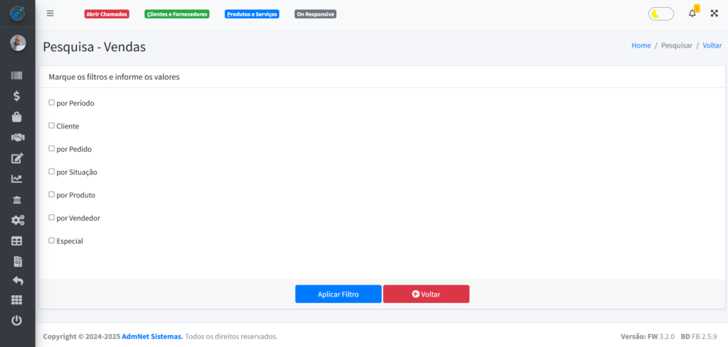 O botão “Filtrar” vai ser algo a parte, já que nele você consegue filtrar todos os pedidos em qualquer Situação que eles estiverem. Ao clicar nele, você será levado para outra página onde terá de escolher o filtro desejado para verificar os produtos filtrados.