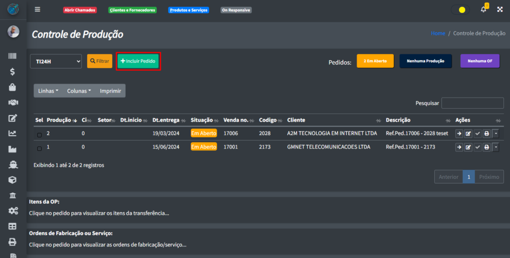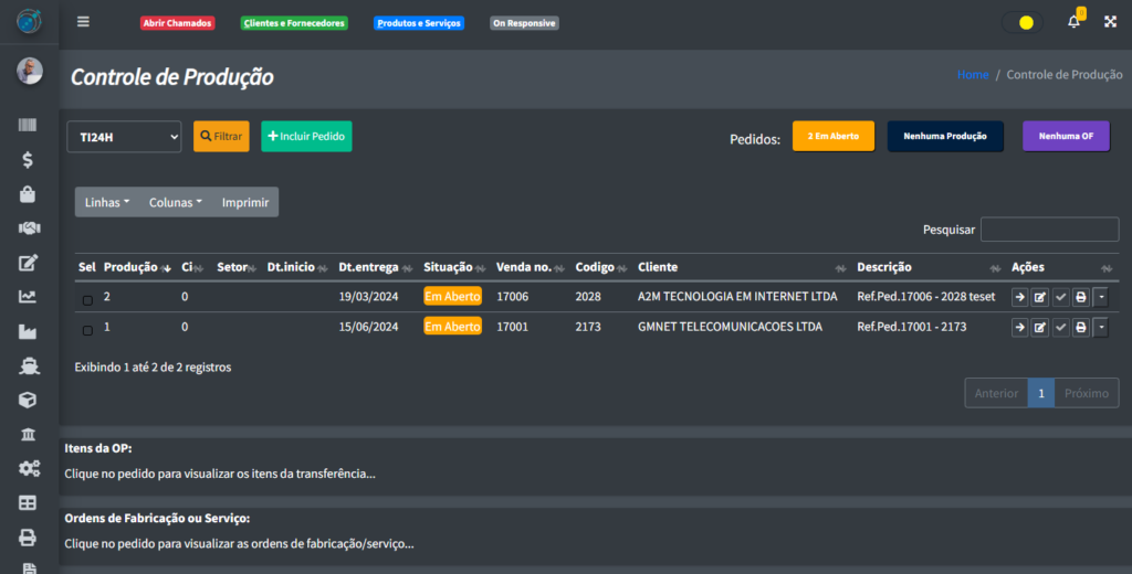 1. OBS: Você só consegue fazer um item na parte de Controle de Produção apenas se houver um pedido em andamento. ↩︎