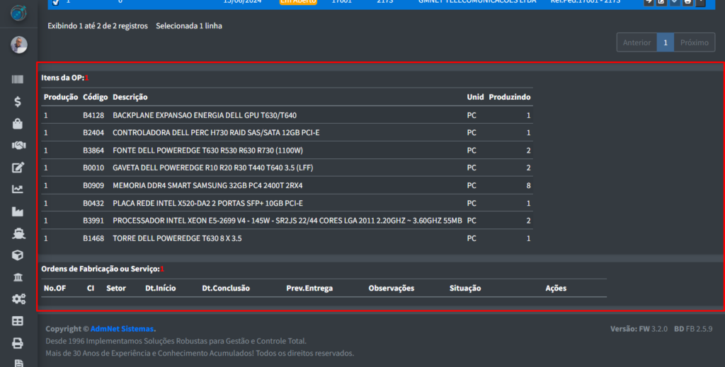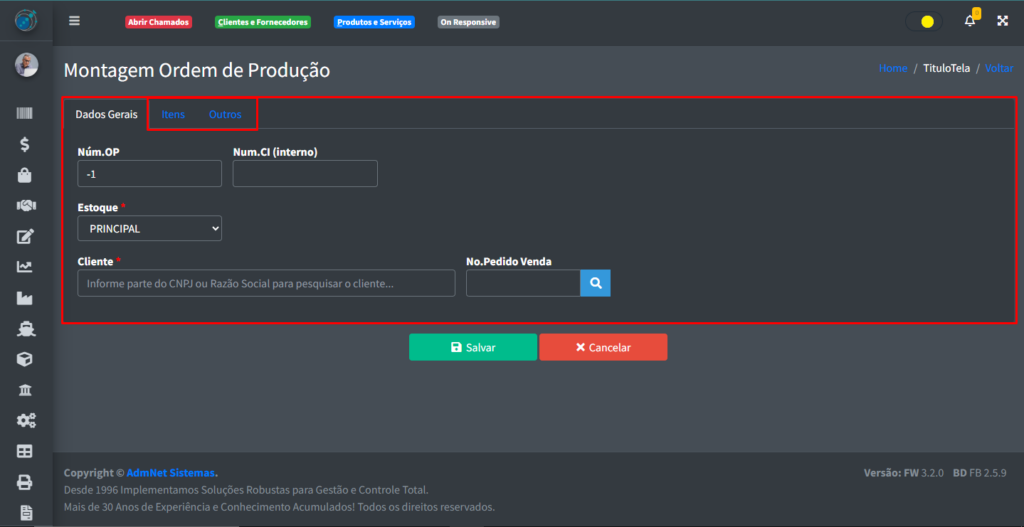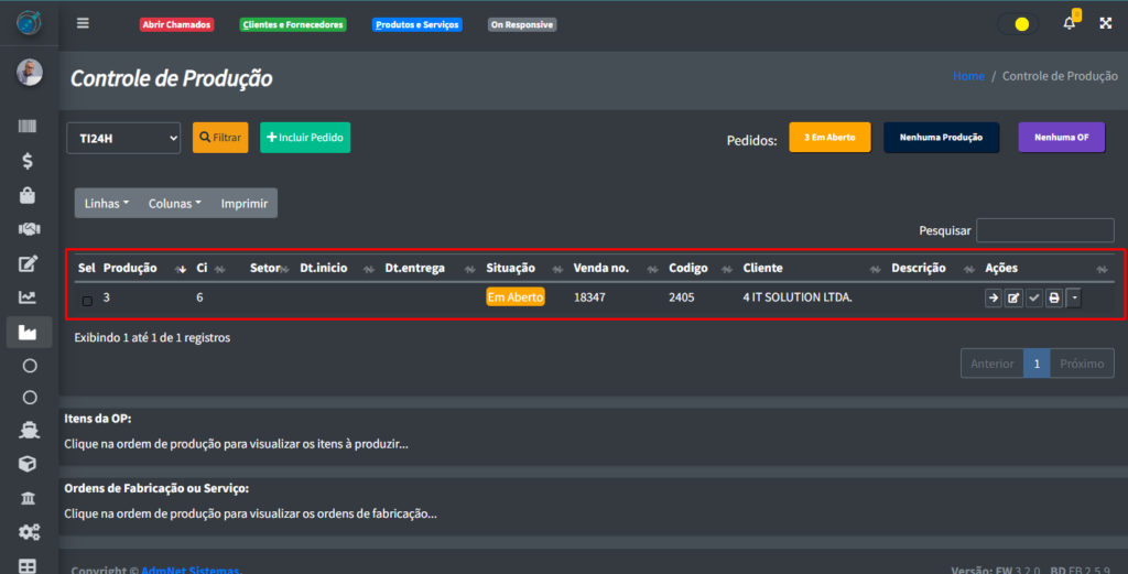 • Iniciar OP: Passa o pedido adiante na Situação dele, indo para a parte de Produção;