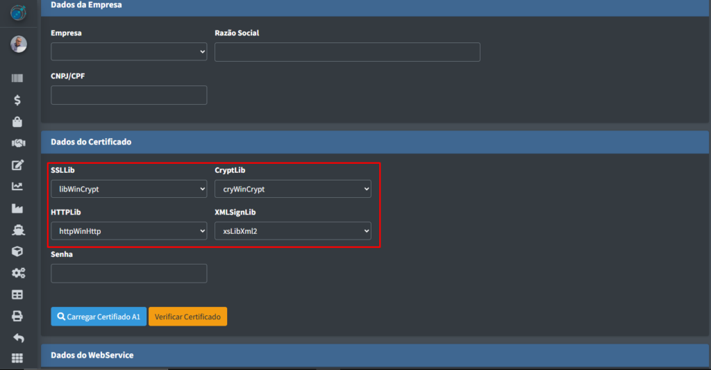 OBS: O sistema somente aceita certificados do tipo A1.