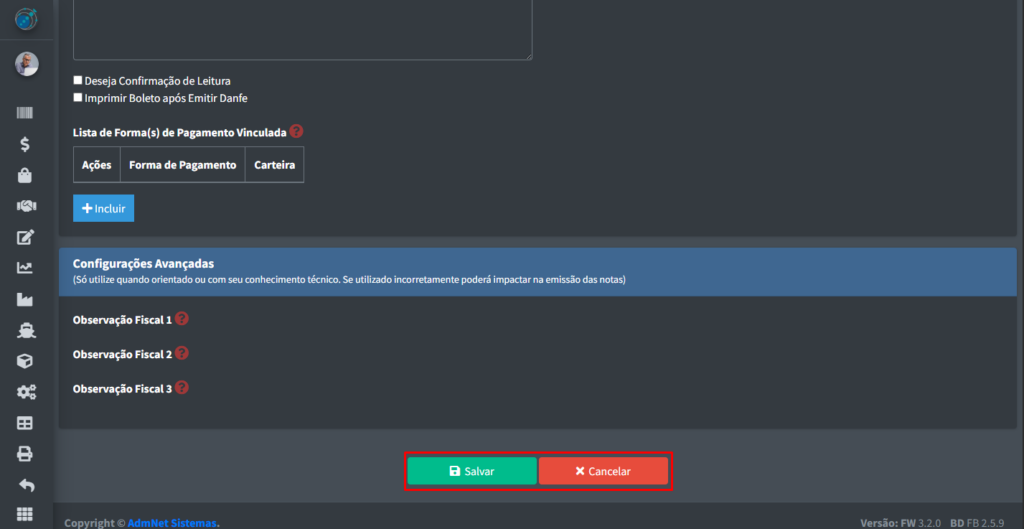 • Excluir Registro: Deleta os dados da emissão da nfe do sistema;