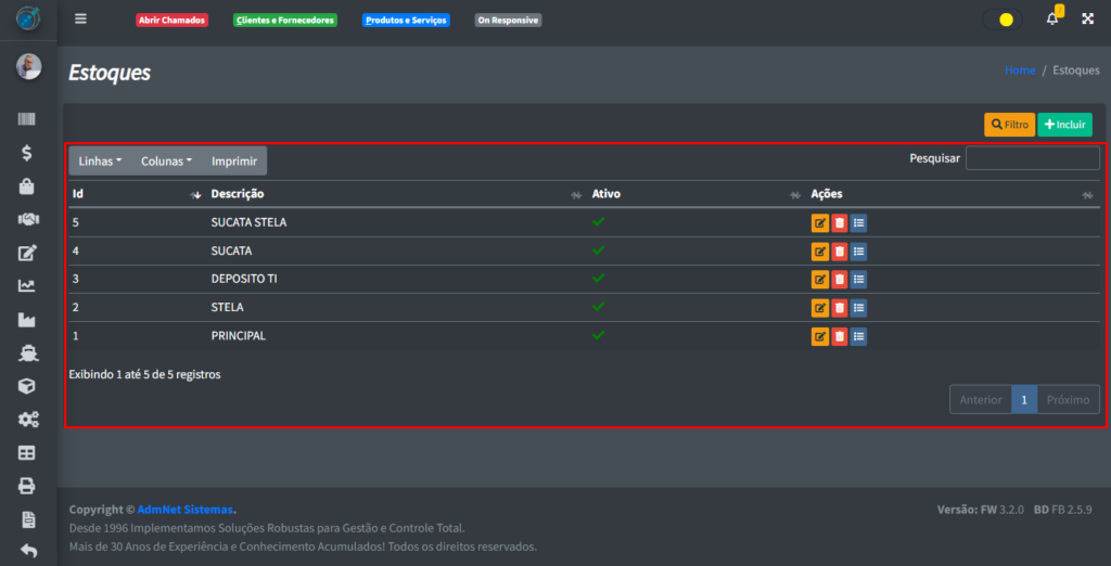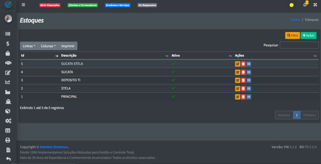 - Excluir Registro: Deleta o registro do sistema;