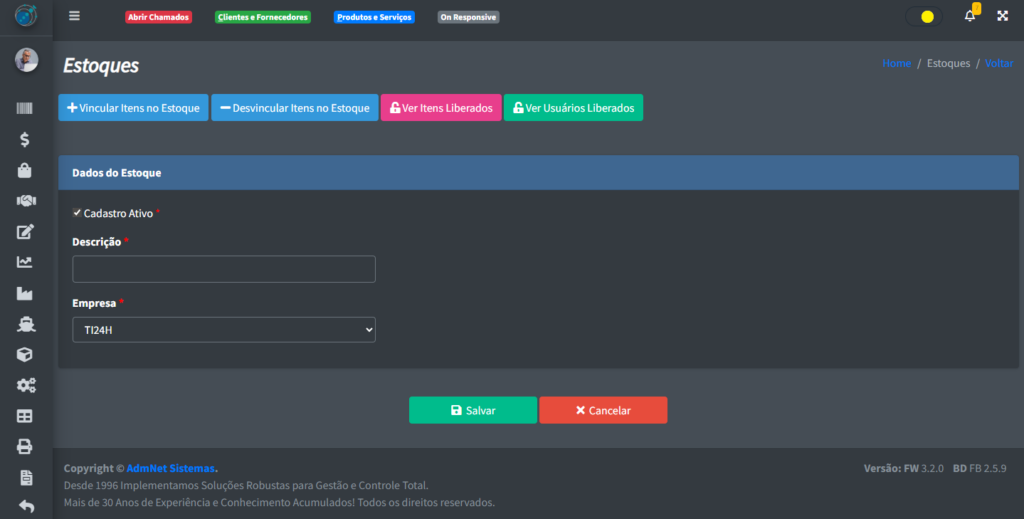 - Vincular Itens no Estoque: Vincula um item ao seu novo estoque;