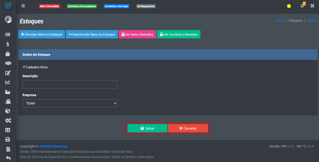 Os botões Ver Itens Liberados e Ver Usuários Liberados, botão só podem ser acessados caso você modifique ou visualize o registro após clicar em salvar (Iremos falar disso mais para frente nesse artigo).