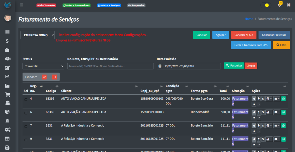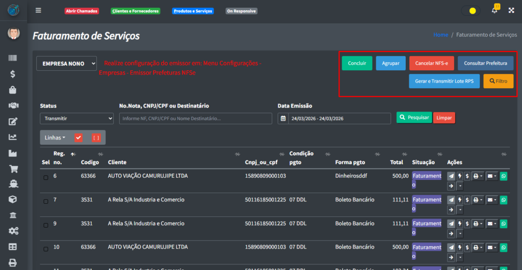 Nesse artigo você aprenderá a como fazer um faturamento de serviços no sistema.