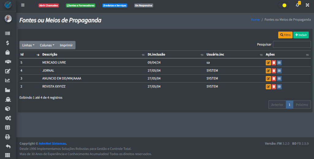 Ao clicar no botão de “Salvar“, você vai voltar para a tela anterior de maneira automática e poderá ver o seu novo meio de propaganda na tabela.