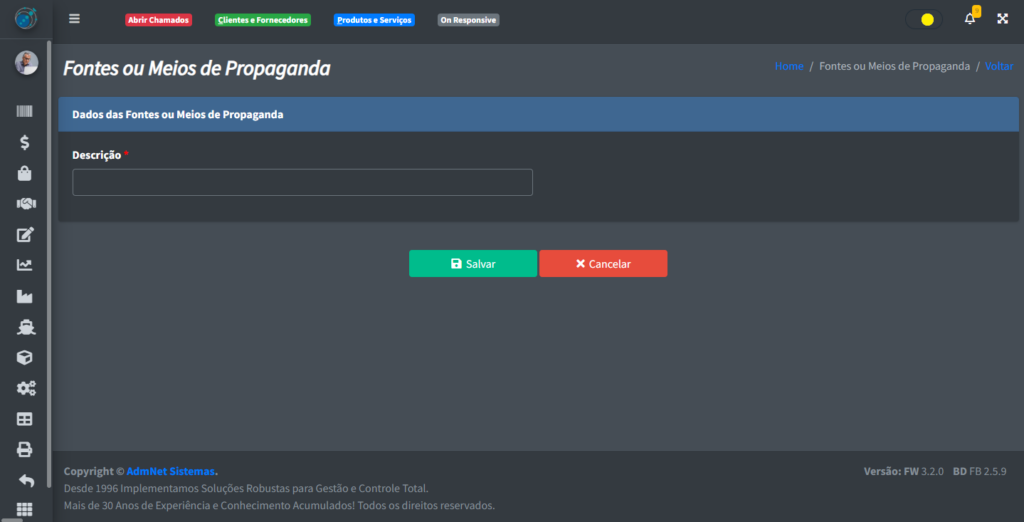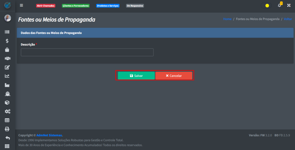 Após preencher o campo obrigatório, você poderá clicar nos botões “Salvar” ou “Cancelar“: