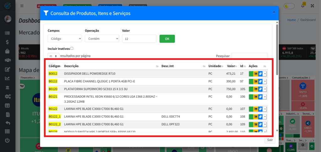 Após clicar no botão “OK“, como dito acima, você vai poder ver todos os registros que condizem com os campos preenchidos por você em uma tabela abaixo: