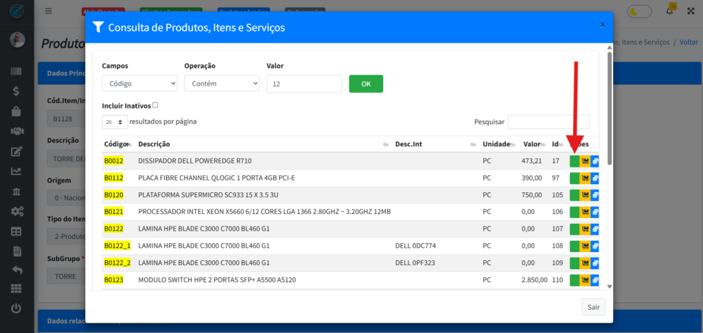 - Ficha Cadastral do Item: Acessa o cadastro do item, onde você pode vê-lo ou modica-lo;