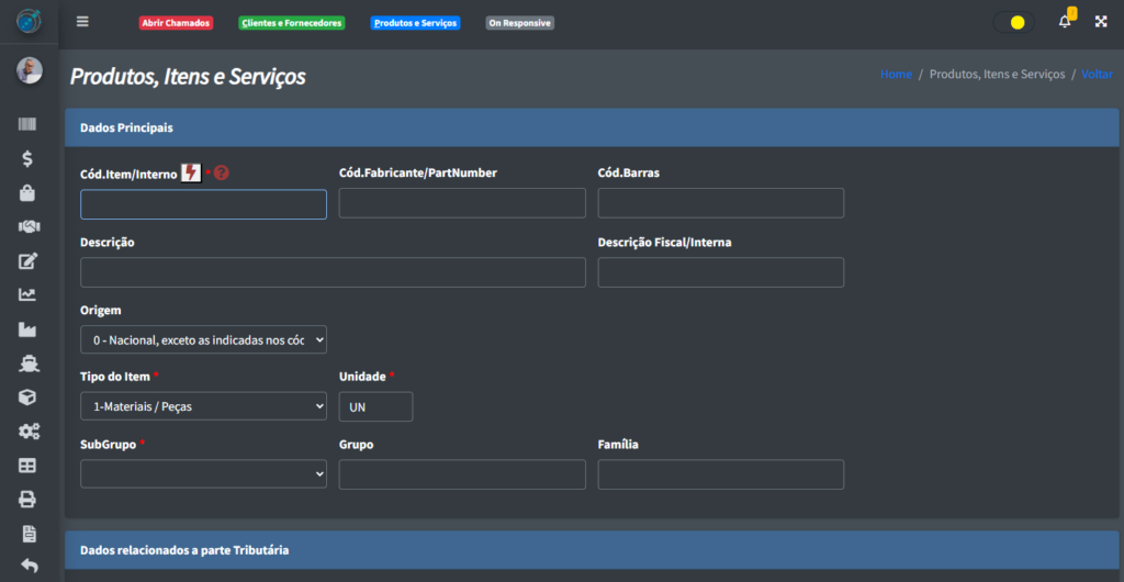Após clicar em “+ Incluir“, você verá uma tela onde poderá cadastrar o seu produto/item/serviço: