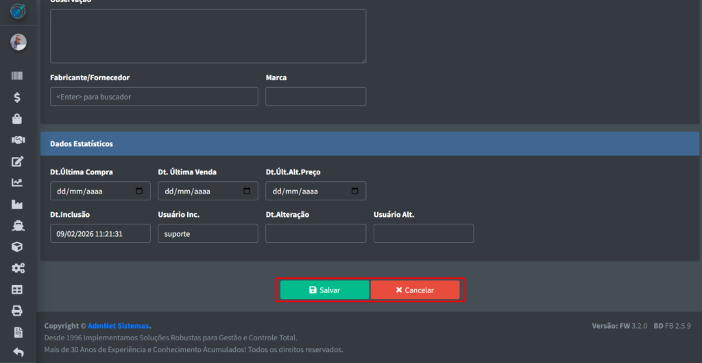 Após colocar as informações em todos os campos obrigatórios, poderá clicar nos botões “Salvar” ou “Cancelar“: