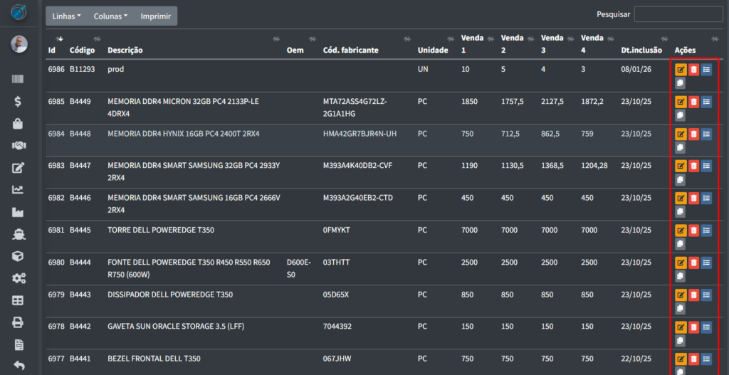 Como você deve ter percebido, há alguns botões na parte direita de cada registro da tabela: