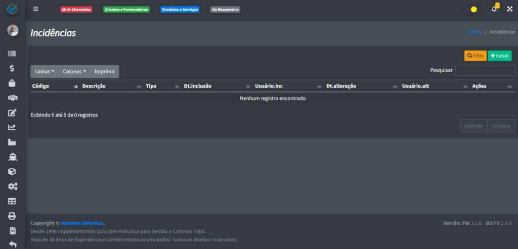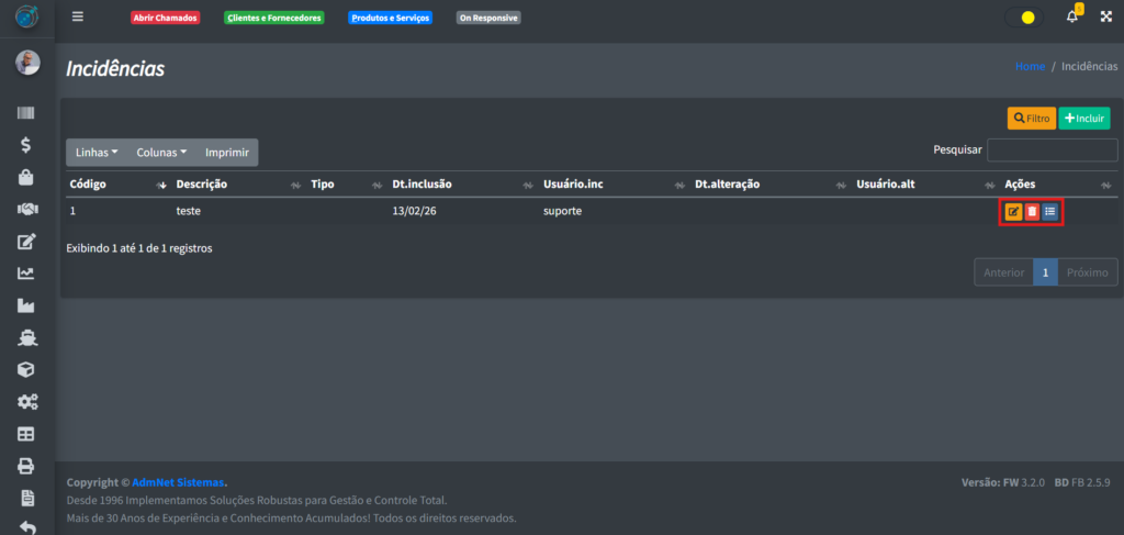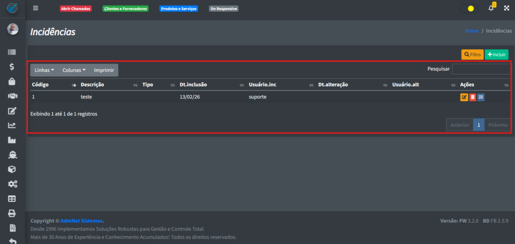 Ao clicar no botão de “Salvar“, você vai voltar para a tela anterior de maneira automática e poderá ver a sua nova incidência na tabela.