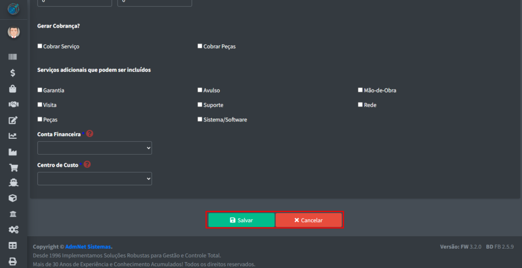 Após colocar as informações em todos os campos obrigatórios, poderá clicar nos botões “Salvar” ou “Cancelar“: