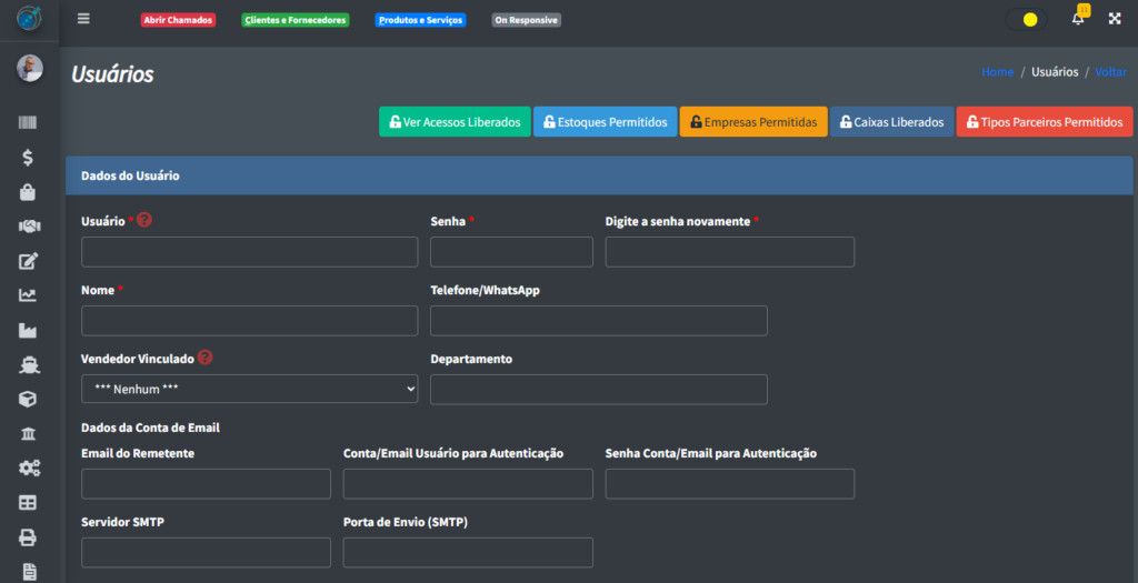 - Estoques Permitidos: Mostra todos os estoques que o usuário pode ter ao sistema;
