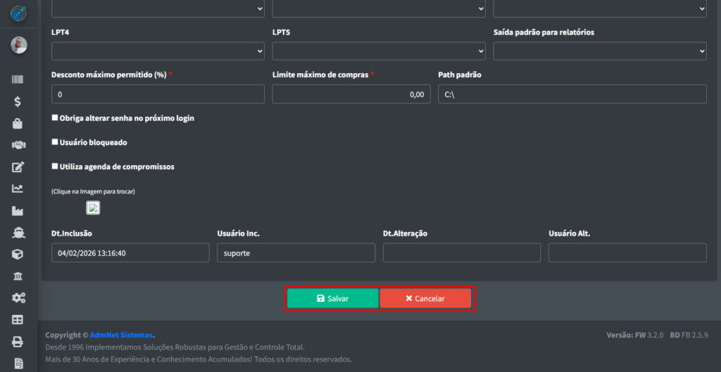 OBS: Para liberação desta função, acesse a tela de cadastro correspondente